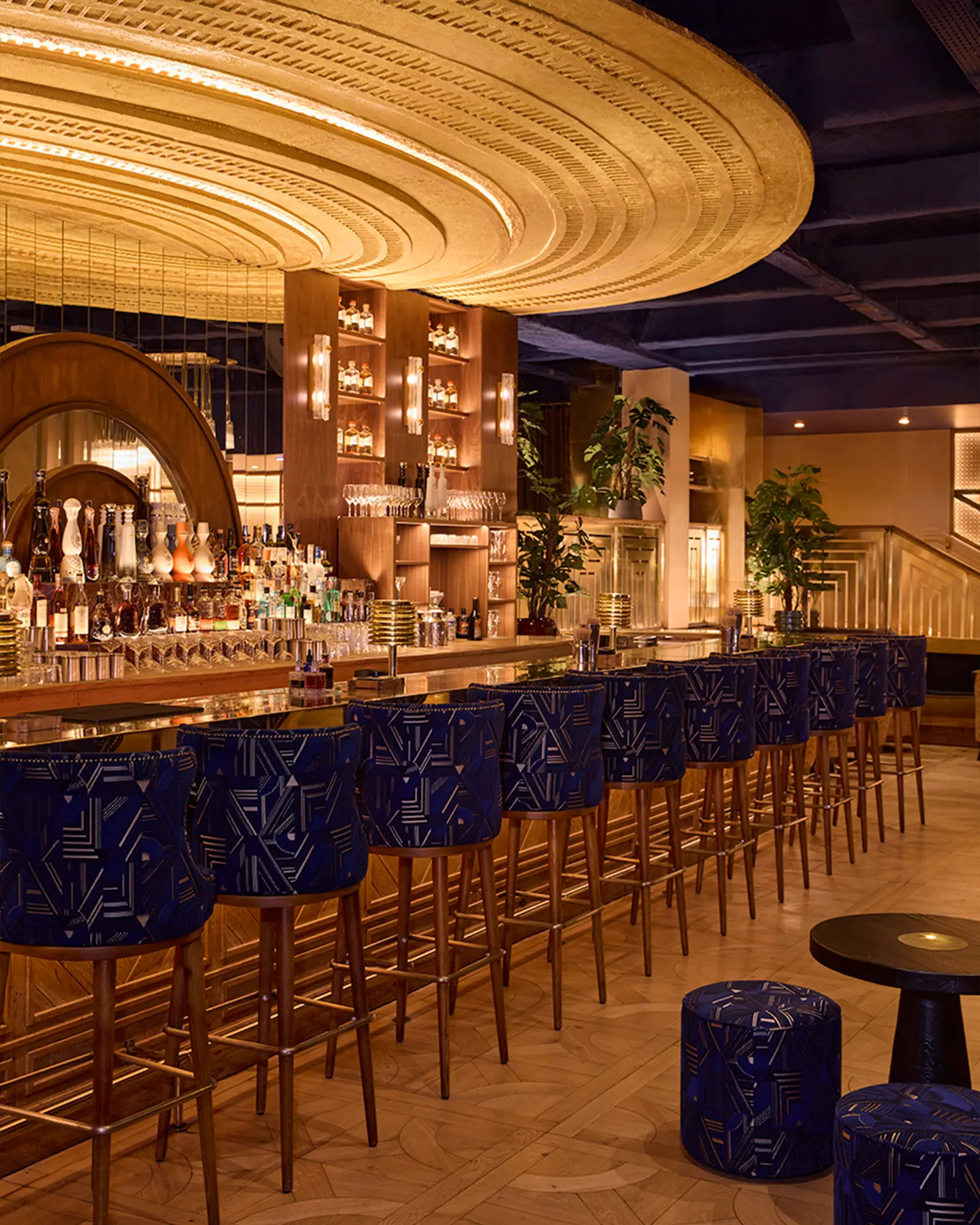 A true tribute to Peruvian gastronomy, Manko celebrates the meeting of heritage and modernity. Born from the fusion of ancestral Andean culture with influences from Europe, Japan, China and Africa, the restaurant embodies a bold cultural blend. For this new chapter in its history, Moma Group and Bureau Lacroix imagined a rethought identity: renewing Manko while preserving its essence. From the very entrance, Manko’s founding codes engage in dialogue with a contemporary vocabulary. The venue’s iconic motifs unfold at different scales, coming to life on a wall installation and evolving through new forms. Among them, medallions inspired by the Inca calendar are reinterpreted as ceiling lights, casting a golden glow across deep midnight-blue ceilings. Inside the restaurant, the iconic chairs are reinvented: reupholstered in blue and gold fabrics, they sit alongside new seating and glass and brass light fixtures, in natural continuity with the original pieces. Behind this composition, a new ceviche bar is revealed in blue tones, wrapped in a mosaic evoking the marine richness of Peru. The signature bar undergoes a transformation of its setting, featuring an extraordinary golden structure, a medallion overlooking a through bar back in walnut, red marble and mirror. This interplay of materials and reflections captures the light and enhances the venue’s historic staircase, creating a subtle dialogue between past and present. Through a scenography of light, vegetation and noble materials, Manko once again establishes itself as a vibrant, gastronomic and festive destination.